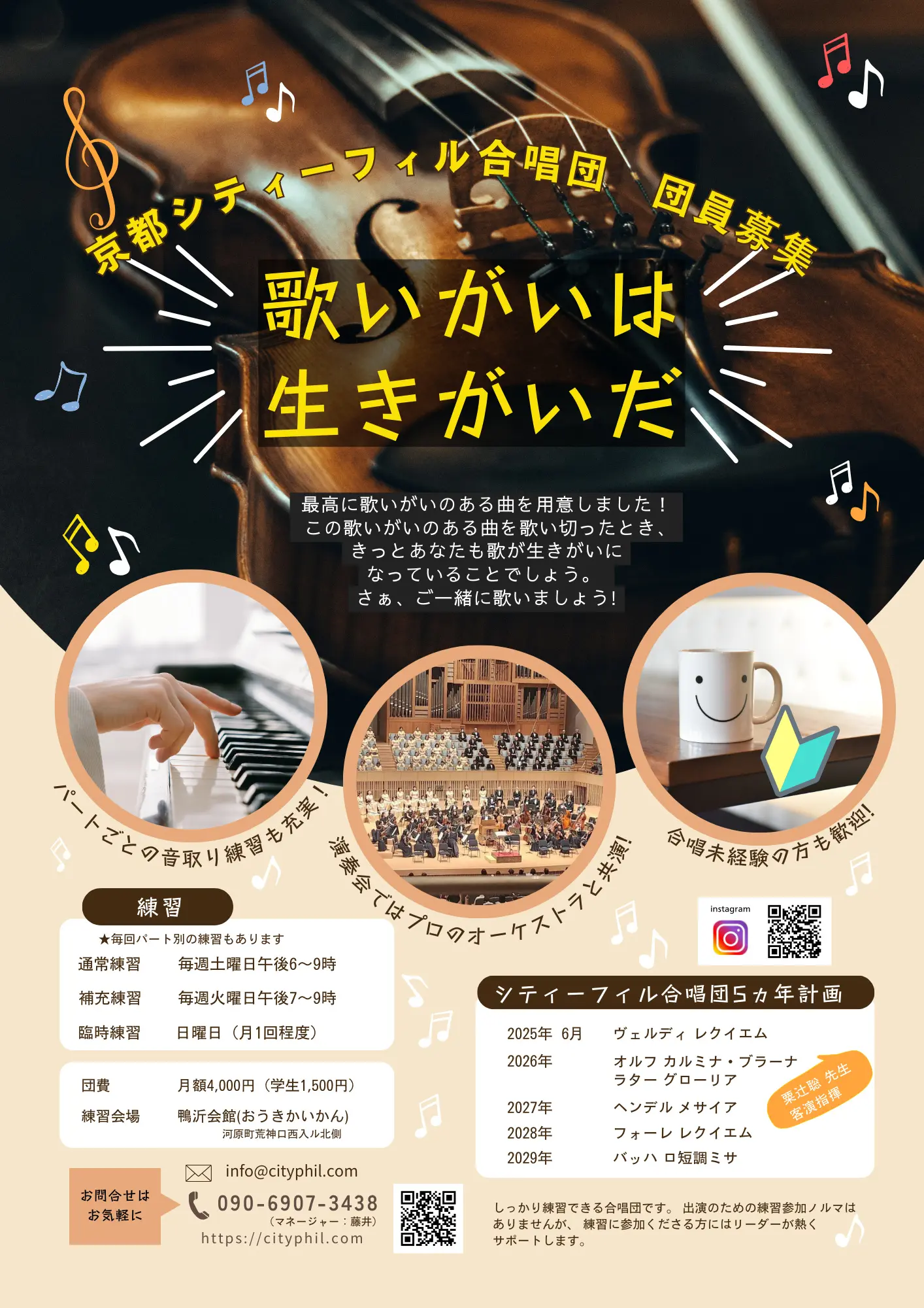 私たち京都シティーフィル合唱団は、クラシック音楽の醍醐味をもっと多くの方と共に味わいたいと考え、一緒に歌う仲間を募集しています。